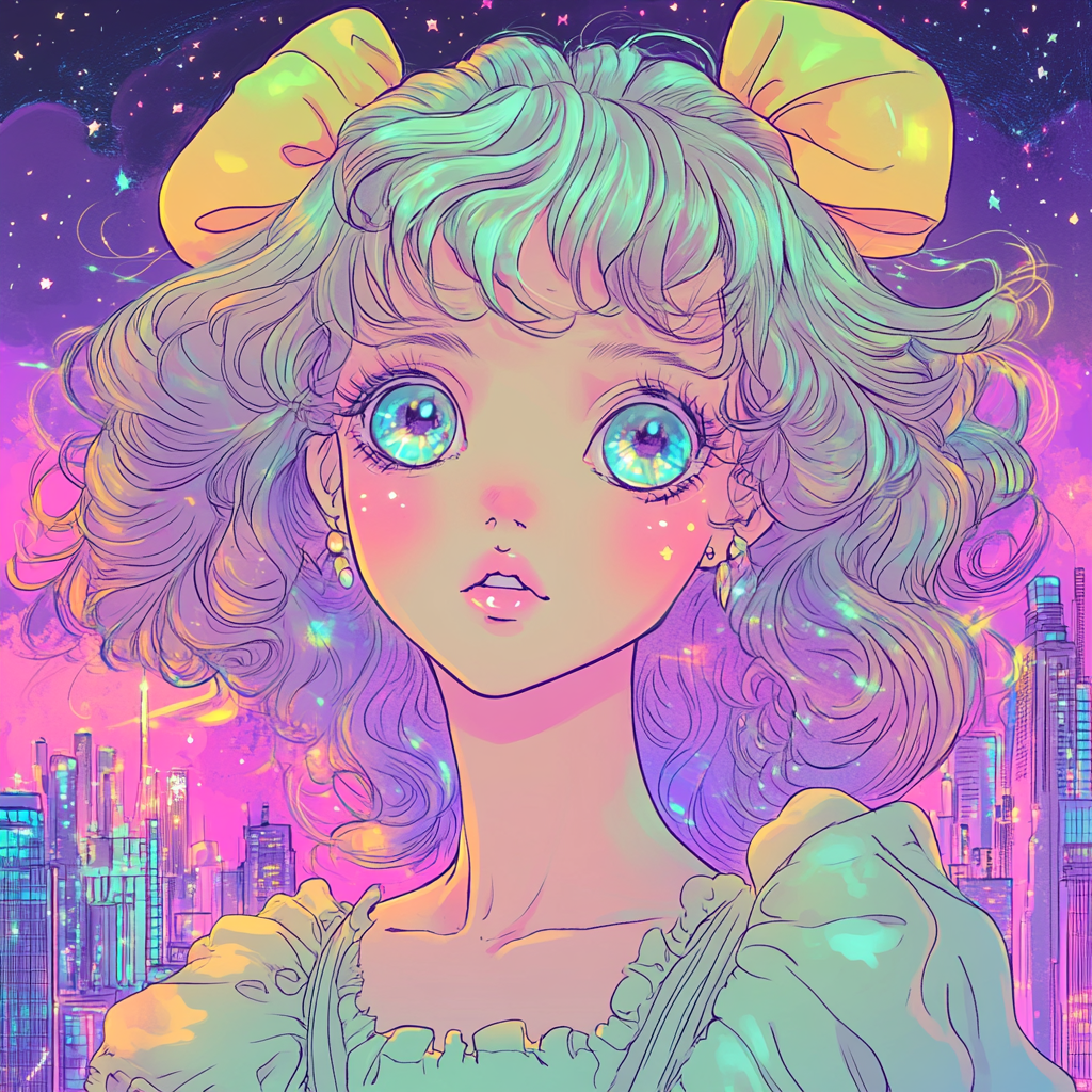 A: pastel, sparkle, dreamy, magical girl, glowing, ribbon, anime style ๊ฐ์ ํค์๋๋ ๋ฐ๋์ ํฌํจํ๋ ๊ฒ์ด ์ข์์ ๐