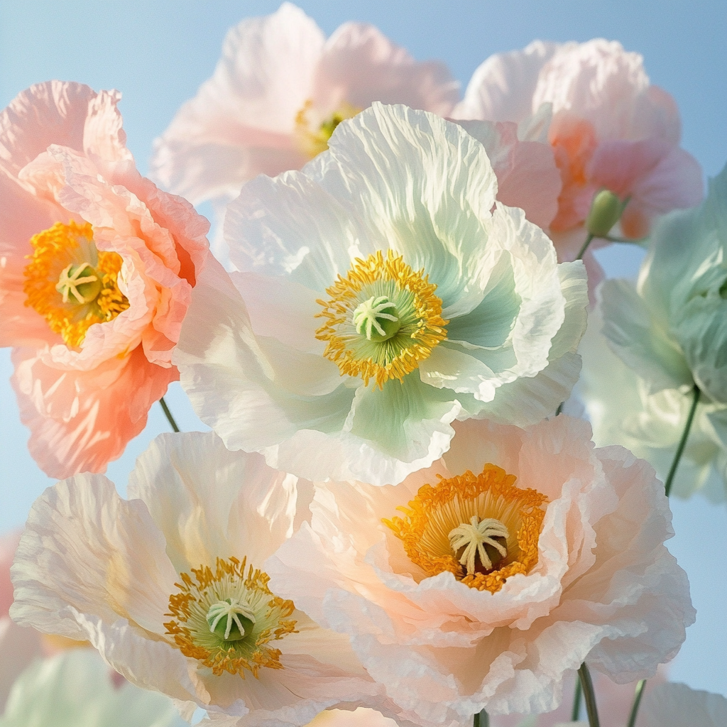 ๊ฐ๋ ฌํ ์๊ฐ์ ๊ฝ๋ค ์ฌ์ด์์ ์ค์คํ๋ฐ์ด์ง์ ์๊ฐ๊ฝ์ ๋ถ๋๋ฝ๊ณ ์ฌ์ธํ ๋๋์ ๋ํฉ๋๋ค. ์๋ฐฑ์ ๋ฐ์ด์ง์ ๋ถ๋๋ฌ์ด ๊ณก์ ์ ์๊ฐ๊ฝ์ด ํฌํ ์กด ์ฃผ๋ณ์ ์๋ฆฌํ๋ฉฐ, ์ฌ์ง์ ์์ฑ๋๋ฅผ ๋์ฌ์ค๋๋ค.